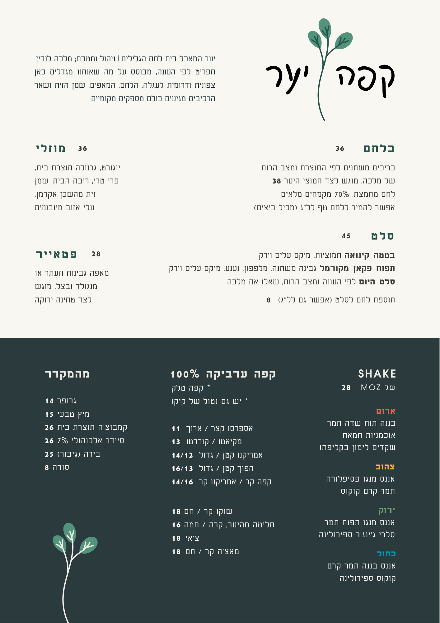 בתוך מושב בית לחם הגלילית שבעמק יזרעאל ניצבת עגלת קפה: קפה יער. המטבח עובד עם התוצרת המקומית, מהשדה לשולחן. slow food. מקום בלי חד-פעמי ובלי פסולת, בלב מערכת חקלאית-אקולוגית שמחה ובריאה. שעות פעילות: ראשון עד חמישי 08:30-15:00 שישי 09:00-14:00 שבת 10:00-15:00 תמיד מומלץ להתעדכן באתר הרישמי על עדכוני שעות הפעילות מה עוד חשוב לדעת: